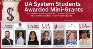 LITTLE ROCK (Thursday, April 30, 2026) — The college experience for seven students from University of Arkansas System campuses became a little easier after it was announced they earned grants from an endowment honoring James L. “Skip” Rutherford III, dean emeritus of the University of Arkansas Clinton School of Public Service.